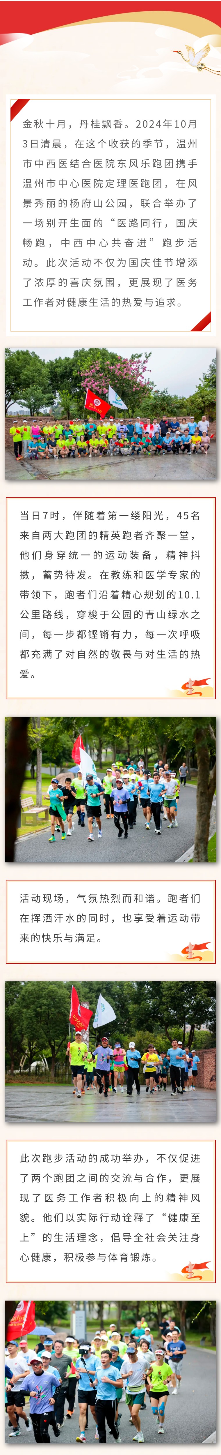 未來,溫州市中西醫(yī)結合醫(yī)院東風樂跑團與溫州市中心醫(yī)院定理醫(yī)跑團將繼續(xù)攜手前行,為推動全民健康事業(yè)的發(fā)展貢獻自己的力量,共同書寫人民健康新篇章。