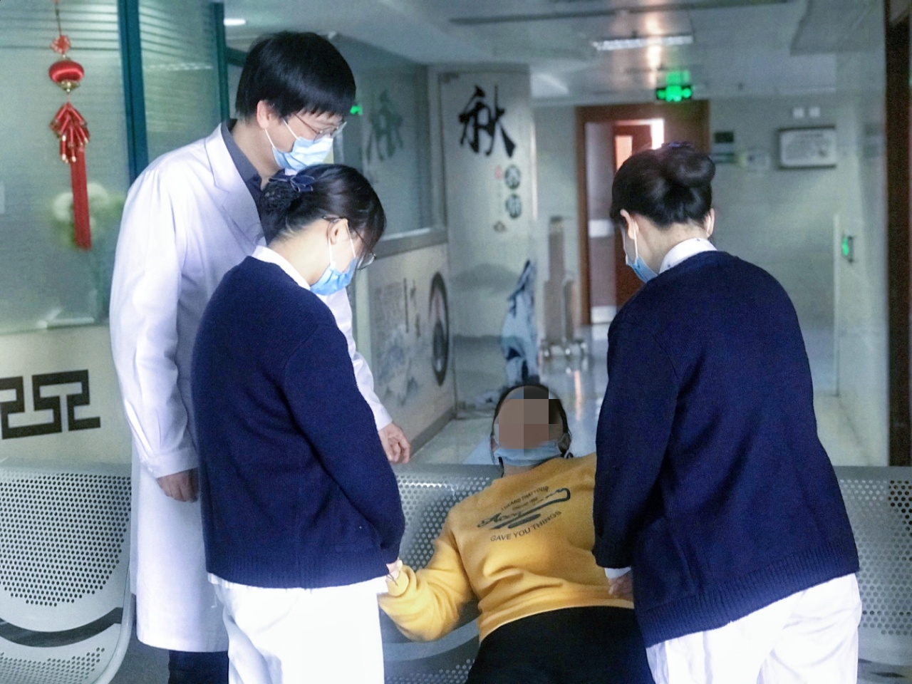 3月29日下午,在溫州市中西醫(yī)結(jié)合醫(yī)院婦科一病區(qū)的走廊上,一位預(yù)住院患者突然癱軟在座椅上,面色蒼白,大汗淋漓。一旁的護士喊道:“大家快來!”。數(shù)位醫(yī)護人員聞聲而至。