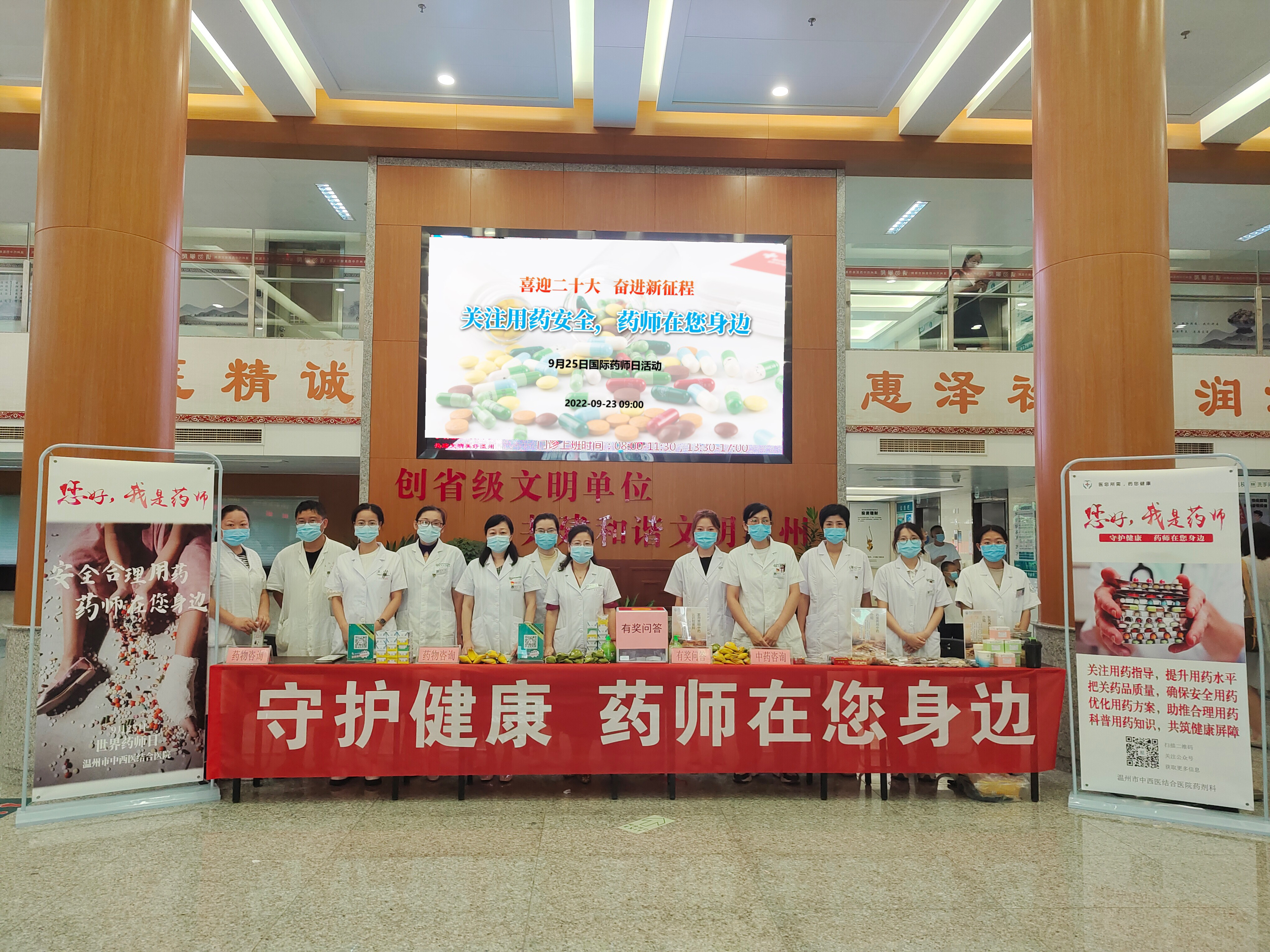 在今年第12個“世界藥師日”來臨之際,同時為喜迎黨的二十大召開,溫州市中西醫(yī)結(jié)合醫(yī)院藥劑科開展以“關注用藥安全,藥師在您身邊”為主題的公益藥學服務活動,近距離宣傳合理用藥知識,為公眾解決實際用藥問題。
