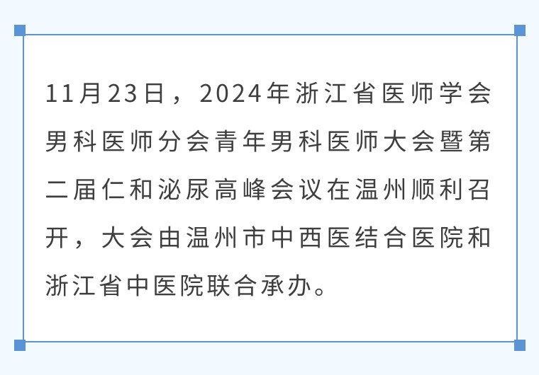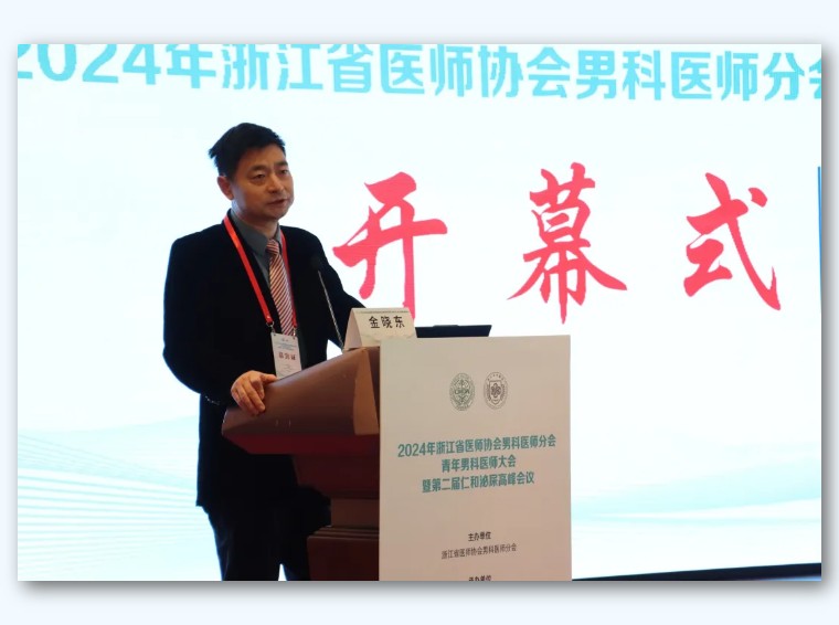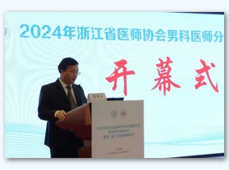 浙江省醫(yī)師協(xié)會男科醫(yī)師分會會長、浙江省中醫(yī)院院長助理兼泌尿外科主任金曉東,溫州市中西醫(yī)結合醫(yī)院副院長程斌,溫州市醫(yī)學會男科學分會主任委員蔡健教出席開幕式并致辭,開幕式由溫州市中西醫(yī)結合醫(yī)院泌尿科科主任邵紹豐主持。