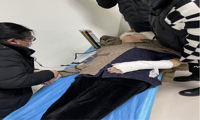 (圖為一位阿婆來(lái)骨科診室就診時(shí)突發(fā)暈厥,陳恩如護(hù)士冷靜處理)